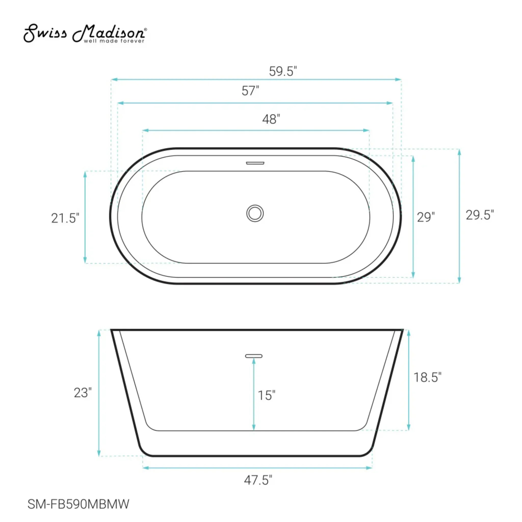 Transform your bathroom into a bold, spa-like retreat with the Swiss Madison Claire 60" Freestanding Bathtub in matte black and matte white. Designed for modern interiors, this 60-inch soaking tub combines minimalist elegance with statement-making color. Whether you’re remodeling a master suite or outfitting a luxury space, the Claire bathtub adds depth, durability, and a sleek contemporary edge.